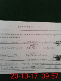 | Monitoring Date: 20-10-2017 | Start Time: 20-10-2017 09:10 AM | End Time: 20-10-2017 09:58 AM | Name of MEA: Al**** Hu**** BN**** | |