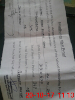| Monitoring Date: 20-10-2017 | Start Time: 20-10-2017 10:37 AM | End Time: 20-10-2017 11:14 AM | Name of MEA: Za**** Hu**** | |