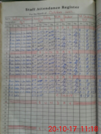 | CNIC | Full Name | Designation | R/C | Absence During Last Calender Month |
