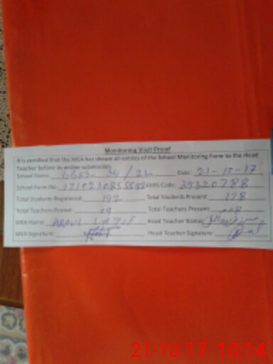 | Certified that this School was Inspected by the Undersigned MEA/DMO Today and the Information Stated Above is as Per Record. | |||||