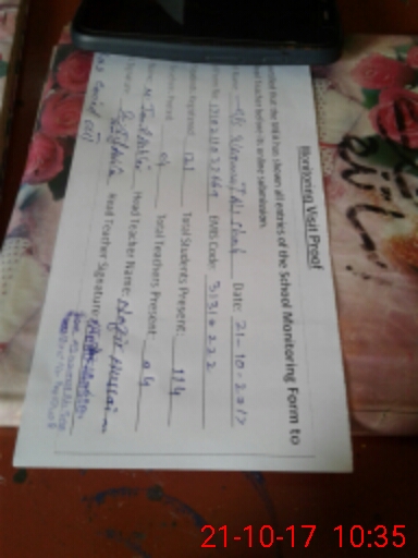 | School Visited by School Health & Nutrition Supervisor (No. of Visits) | 1 | Name1: | Shamshad Hussain | Name2: | Nil |