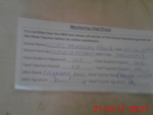| Attendance Register | Head Teacher | MEA with School | Visit Proof |