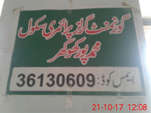 | EMIS Code: 36130609 | Name of School: GGPS MUHAMMAD PUR KHOKHAR | |||