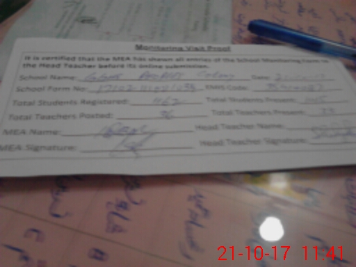 | Certified that this School was Inspected by the Undersigned MEA/DMO Today and the Information Stated Above is as Per Record. | |||||