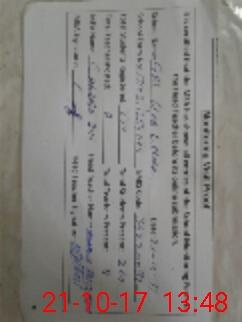 | Monitoring Date: 21-10-2017 | Start Time: 21-10-2017 12:54 PM | End Time: 21-10-2017 01:49 PM | Name of MEA: Ch**** Di**** | |