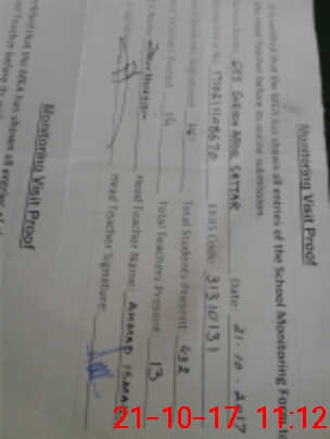 | Monitoring Date: 21-10-2017 | Start Time: 21-10-2017 10:17 AM | End Time: 21-10-2017 11:15 AM | Name of MEA: Za**** Hu**** | |