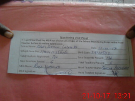 | Attendance Register | Head Teacher | MEA with School | Visit Proof |