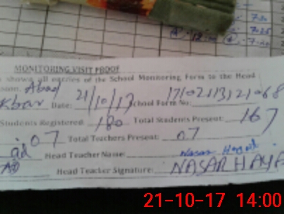 | Attendance Register | Head Teacher | MEA with School | Visit Proof |
