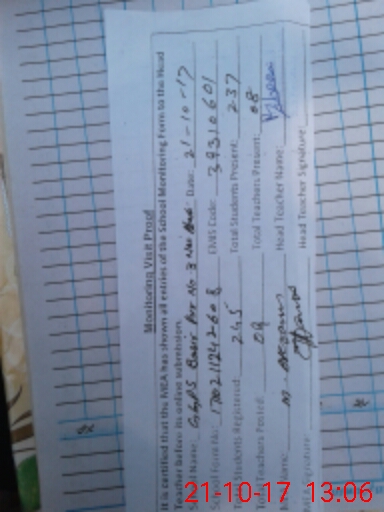 | Monitoring Date: 21-10-2017 | Start Time: 21-10-2017 12:42 PM | End Time: 21-10-2017 01:36 PM | Name of MEA: MU**** AK**** (R**** | |