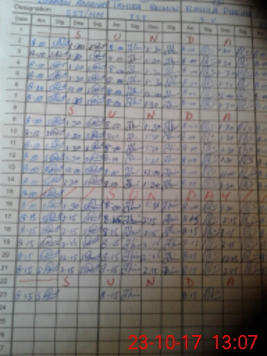 | CNIC | Full Name | Designation | R/C | Absence During Last Calender Month |