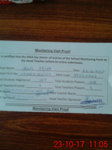 | Attendance Register | Head Teacher | MEA with School | Visit Proof |