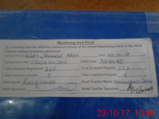| EMIS Code: 39310145 | Name of School: GGES JAHNGIR ABAD | |||