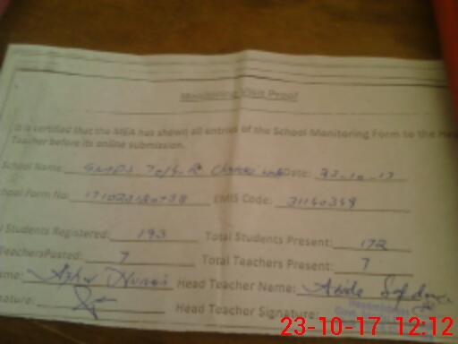 | Attendance Register | Head Teacher | MEA with School | Visit Proof |