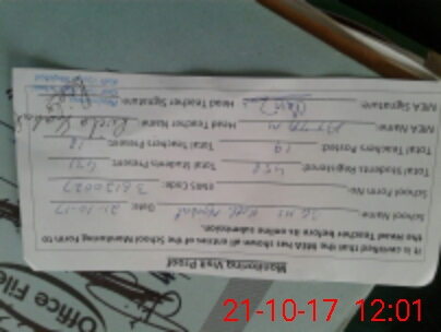 | Attendance Register | Head Teacher | MEA with School | Visit Proof |