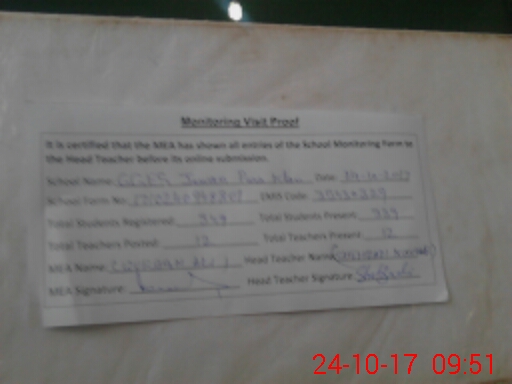 | Certified that this School was Inspected by the Undersigned MEA/DMO Today and the Information Stated Above is as Per Record. | |||||
