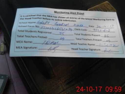 | Attendance Register | Head Teacher | MEA with School | Visit Proof |