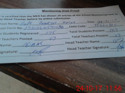 | Certified that this School was Inspected by the Undersigned MEA/DMO Today and the Information Stated Above is as Per Record. | |||||
