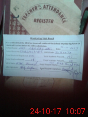 | Attendance Register | Head Teacher | MEA with School | Visit Proof |