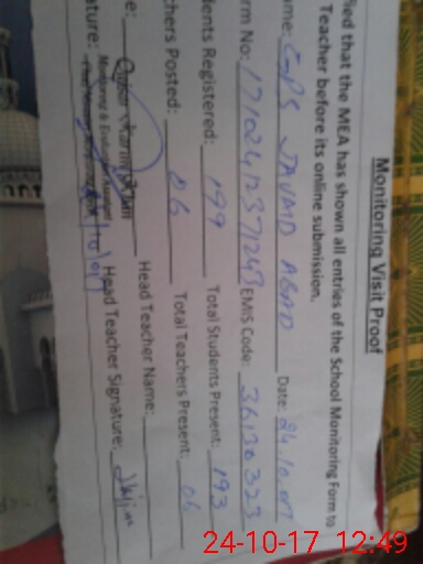 | EMIS Code: 36130323 | Name of School: GPS JAVED ABAD P/O SIKANDARABAD MULTAN | |||