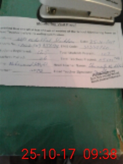 | Monitoring Date: 25-10-2017 | Start Time: 25-10-2017 08:54 AM | End Time: 25-10-2017 09:43 AM | Name of MEA: Mu**** Af**** -R.**** | |