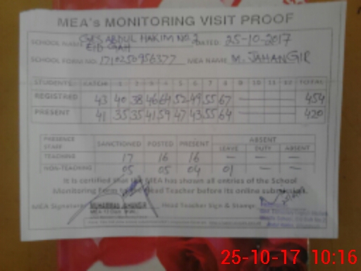 | Attendance Register | Head Teacher | MEA with School | Visit Proof |