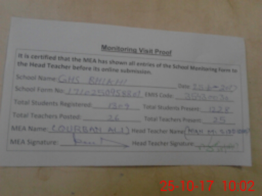 | Certified that this School was Inspected by the Undersigned MEA/DMO Today and the Information Stated Above is as Per Record. | |||||