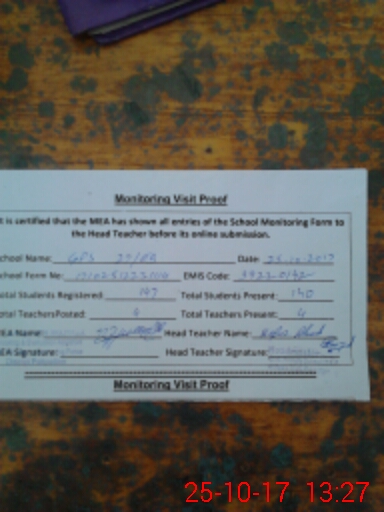 | Attendance Register | Head Teacher | MEA with School | Visit Proof |
