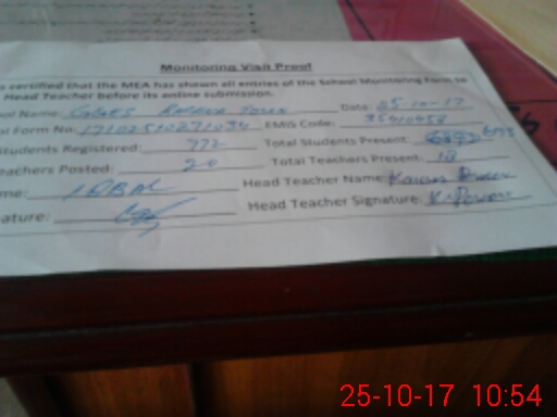 | Attendance Register | Head Teacher | MEA with School | Visit Proof |