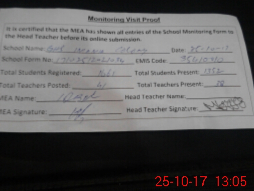 | Certified that this School was Inspected by the Undersigned MEA/DMO Today and the Information Stated Above is as Per Record. | |||||