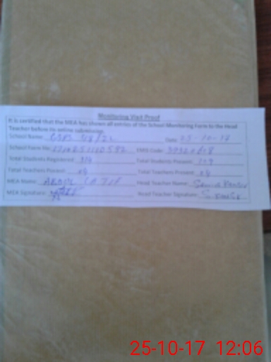| Attendance Register | Head Teacher | MEA with School | Visit Proof |