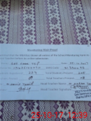 | Attendance Register | Head Teacher | MEA with School | Visit Proof |