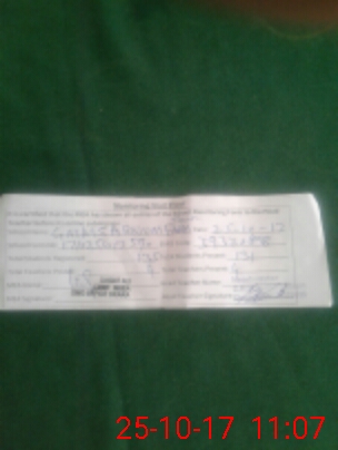 | Monitoring Date: 25-10-2017 | Start Time: 25-10-2017 10:17 AM | End Time: 25-10-2017 11:07 AM | Name of MEA: GH**** MU**** | |