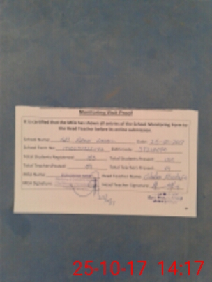 | Attendance Register | Head Teacher | MEA with School | Visit Proof |