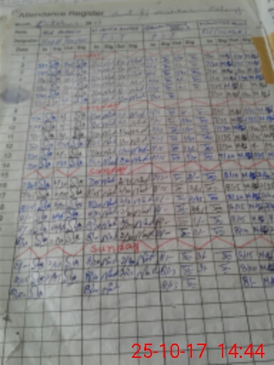 | CNIC | Full Name | Designation | R/C | Absence During Last Calender Month |