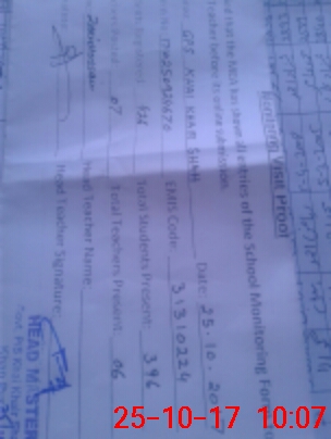 | Monitoring Date: 25-10-2017 | Start Time: 25-10-2017 09:24 AM | End Time: 25-10-2017 10:08 AM | Name of MEA: Za**** Hu**** | |
