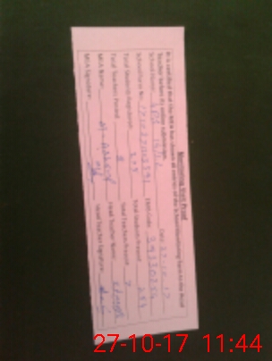 | Monitoring Date: 27-10-2017 | Start Time: 27-10-2017 11:03 AM | End Time: 27-10-2017 11:46 AM | Name of MEA: MU**** TA**** | |