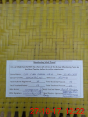 | Attendance Register | Head Teacher | MEA with School | Visit Proof |