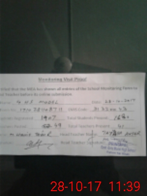 | Certified that this School was Inspected by the Undersigned MEA/DMO Today and the Information Stated Above is as Per Record. | |||||