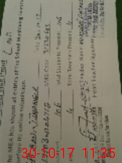 | Monitoring Date: 30-10-2017 | Start Time: 30-10-2017 10:47 AM | End Time: 30-10-2017 11:38 AM | Name of MEA: Mu**** Ja**** An**** | |