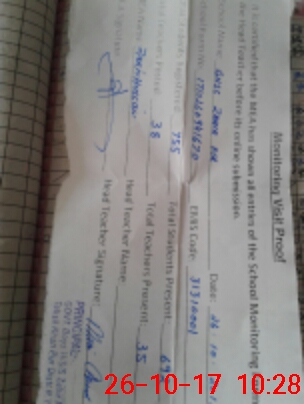 | Monitoring Date: 26-10-2017 | Start Time: 26-10-2017 09:41 AM | End Time: 26-10-2017 10:30 AM | Name of MEA: Za**** Hu**** | |