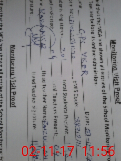 | Monitoring Date: 02-11-2017 | Start Time: 02-11-2017 11:43 AM | End Time: 02-11-2017 11:56 AM | Name of MEA: RA**** NA**** | |
