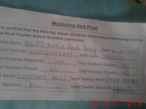 | EMIS Code: 35431213 | Name of School: GGPS KOTLA PANJU BAIG | |||