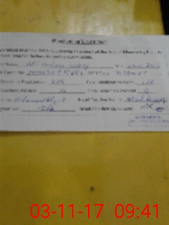| Monitoring Date: 03-11-2017 | Start Time: 03-11-2017 09:00 AM | End Time: 03-11-2017 09:43 AM | Name of MEA: Mu**** Af**** -R.**** | |