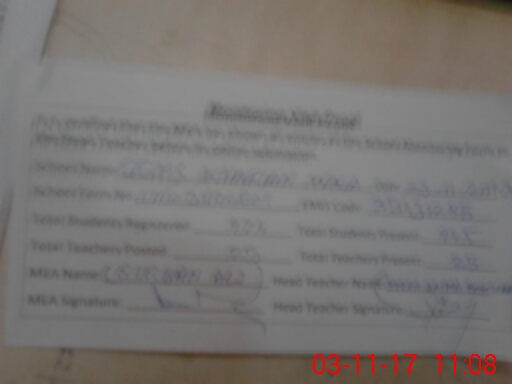 | Name: SA**** SA**** Designation: (School Headmaster's/Headmistress's) Snr Headmistress Phone/Cell Number: 03**** |
