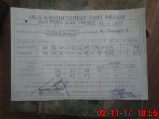 | EMIS Code: 36430017 | Name of School: GHS 59/15-L, MIAN CHANNU | |||
