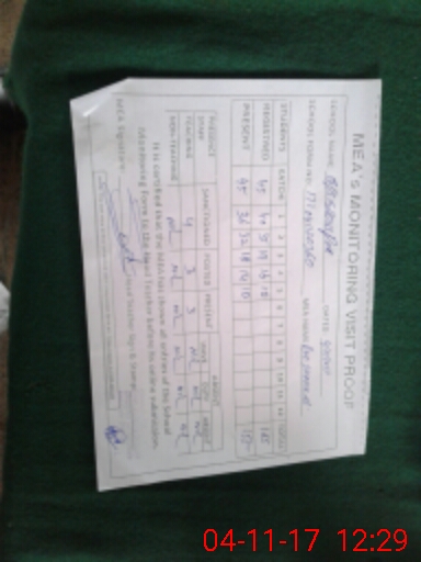 | Attendance Register | Head Teacher | MEA with School | Visit Proof |