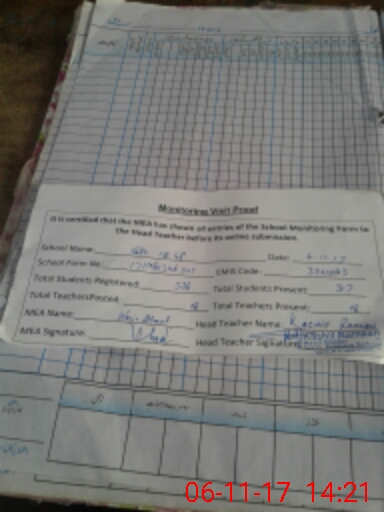 | Attendance Register | Head Teacher | MEA with School | Visit Proof |