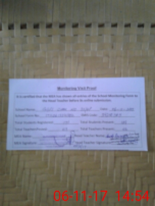 | Attendance Register | Head Teacher | MEA with School | Visit Proof |