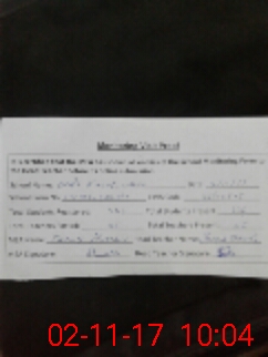 | Monitoring Date: 02-11-2017 | Start Time: 02-11-2017 09:07 AM | End Time: 02-11-2017 10:05 AM | Name of MEA: Ta**** Hu**** | |