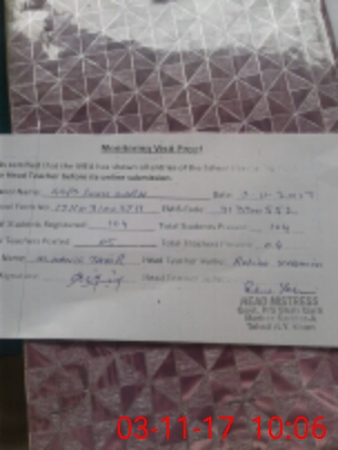| Attendance Register | Head Teacher | MEA with School | Visit Proof |